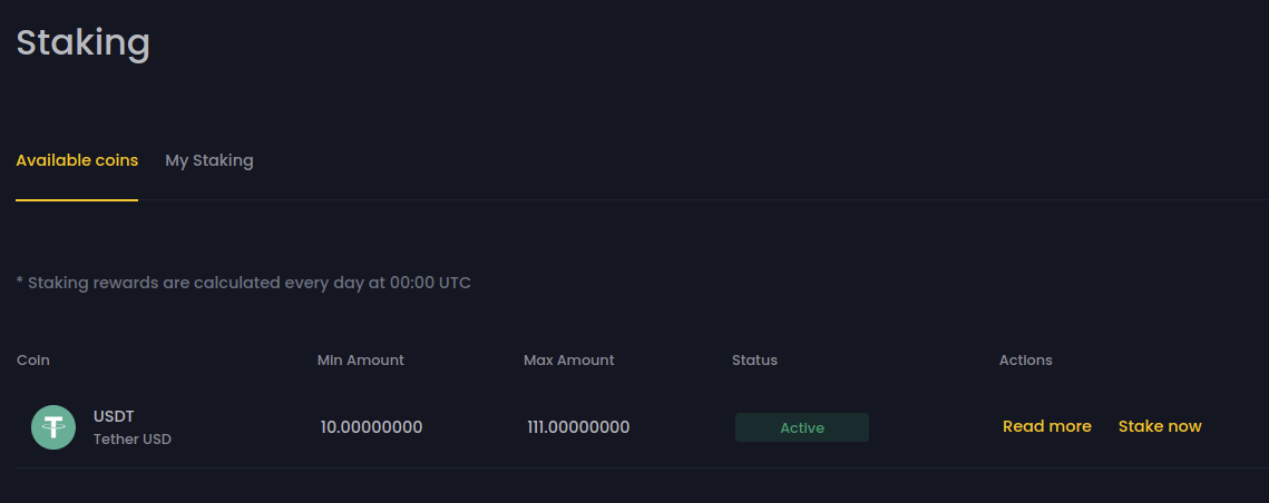 A crypto staking is a module that provides users with the opportunity to earn coins by staking them within the platform.