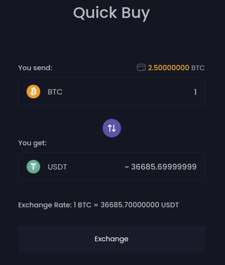 Swap module allows to convert the coin quickly without entering to the market itself. It places market order and buys from the orderbook for a selected market.